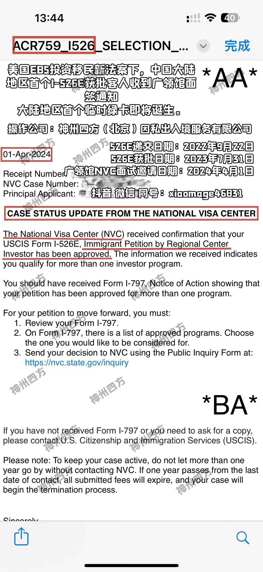 二|很重要:全中国大陆首个 EB5 新政获批成功案例,就是马叔团队做出来的
